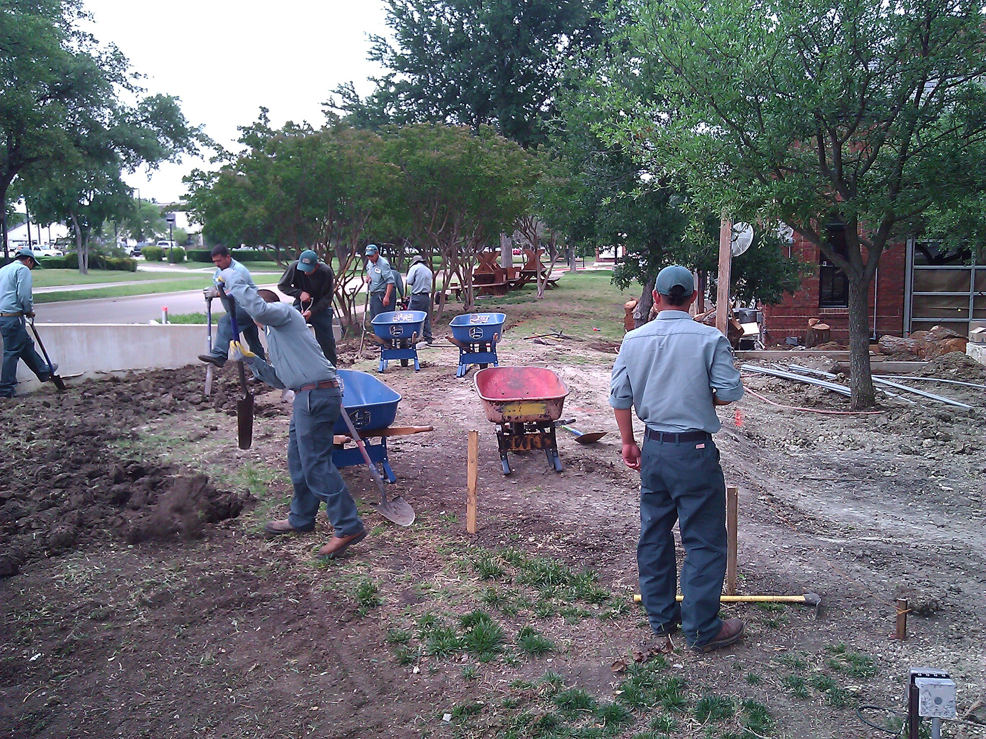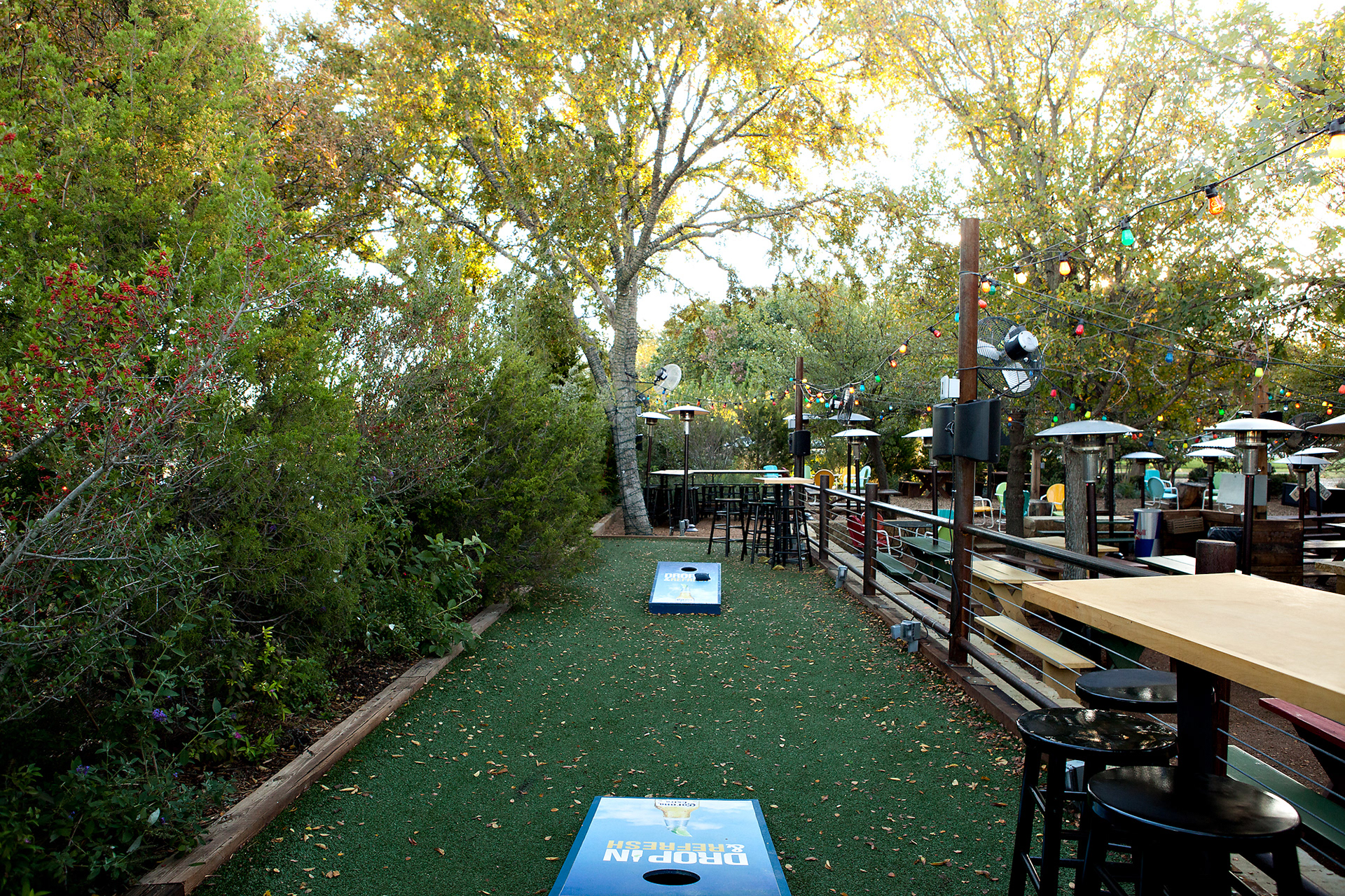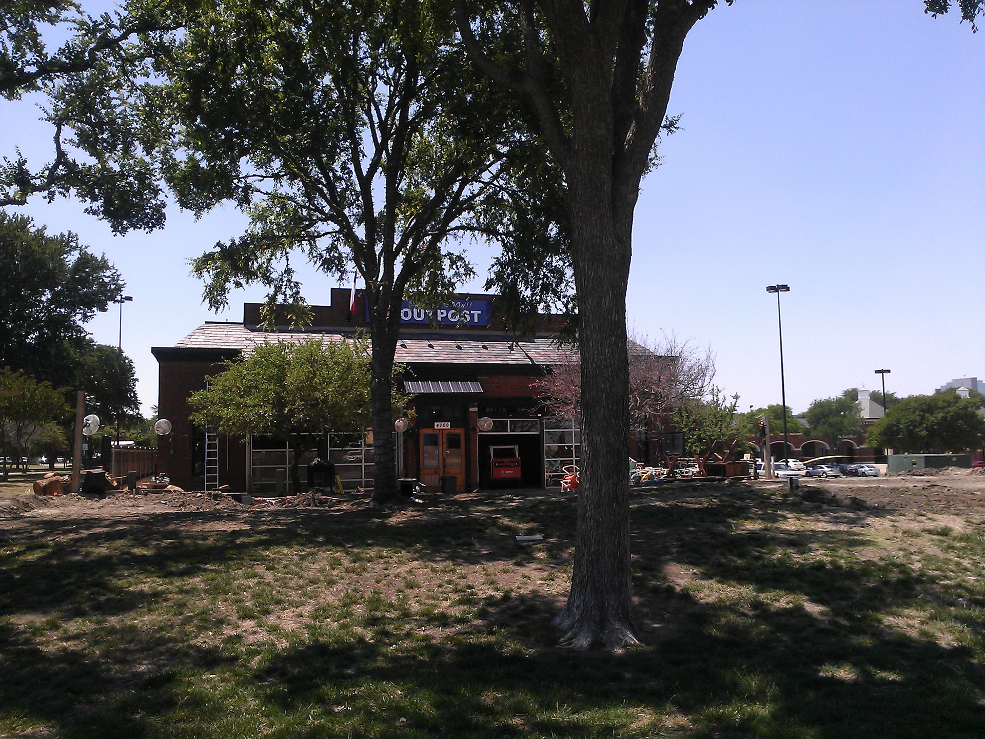 Objective: Design and install a full green screen in a three week timeframe for an outdoor restaurant patio that best mirrors an established wooded area. Spec’ mature plant material to take full advantage of their size in providing a complete screen from the surrounding parking lots and major thoroughfares, all-the-while working around many other contractors aiming to finish before opening day.
