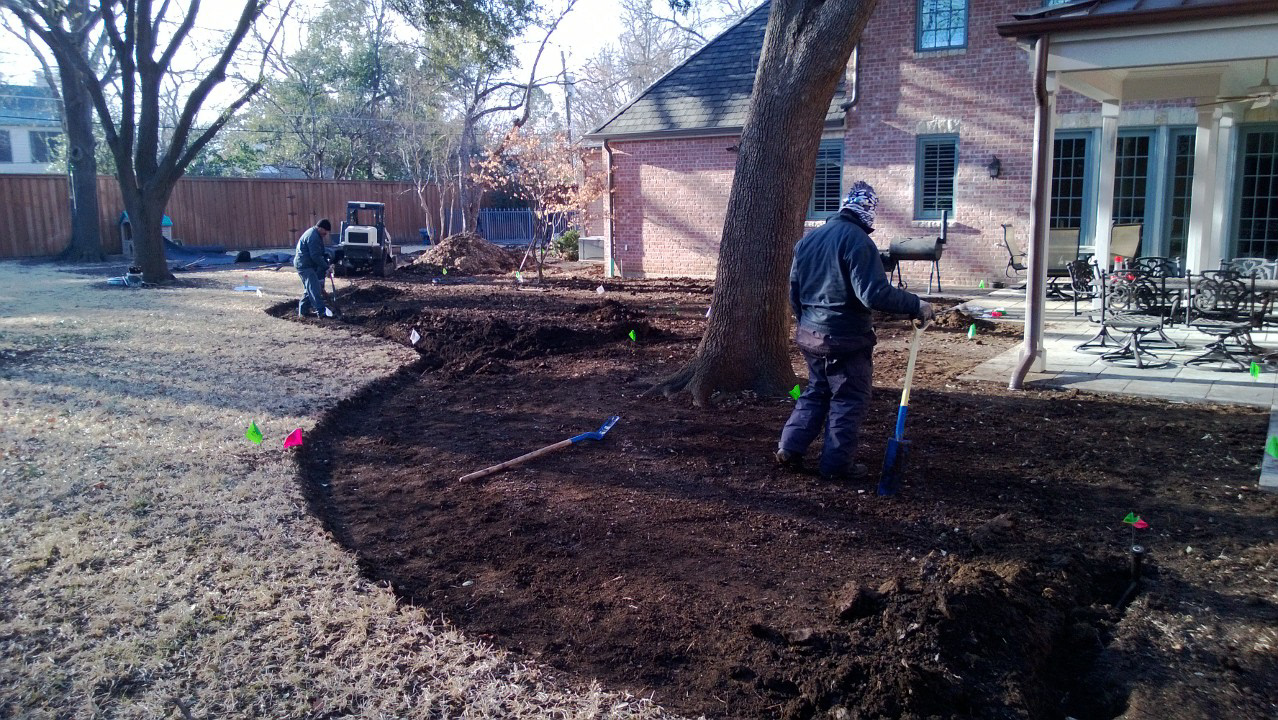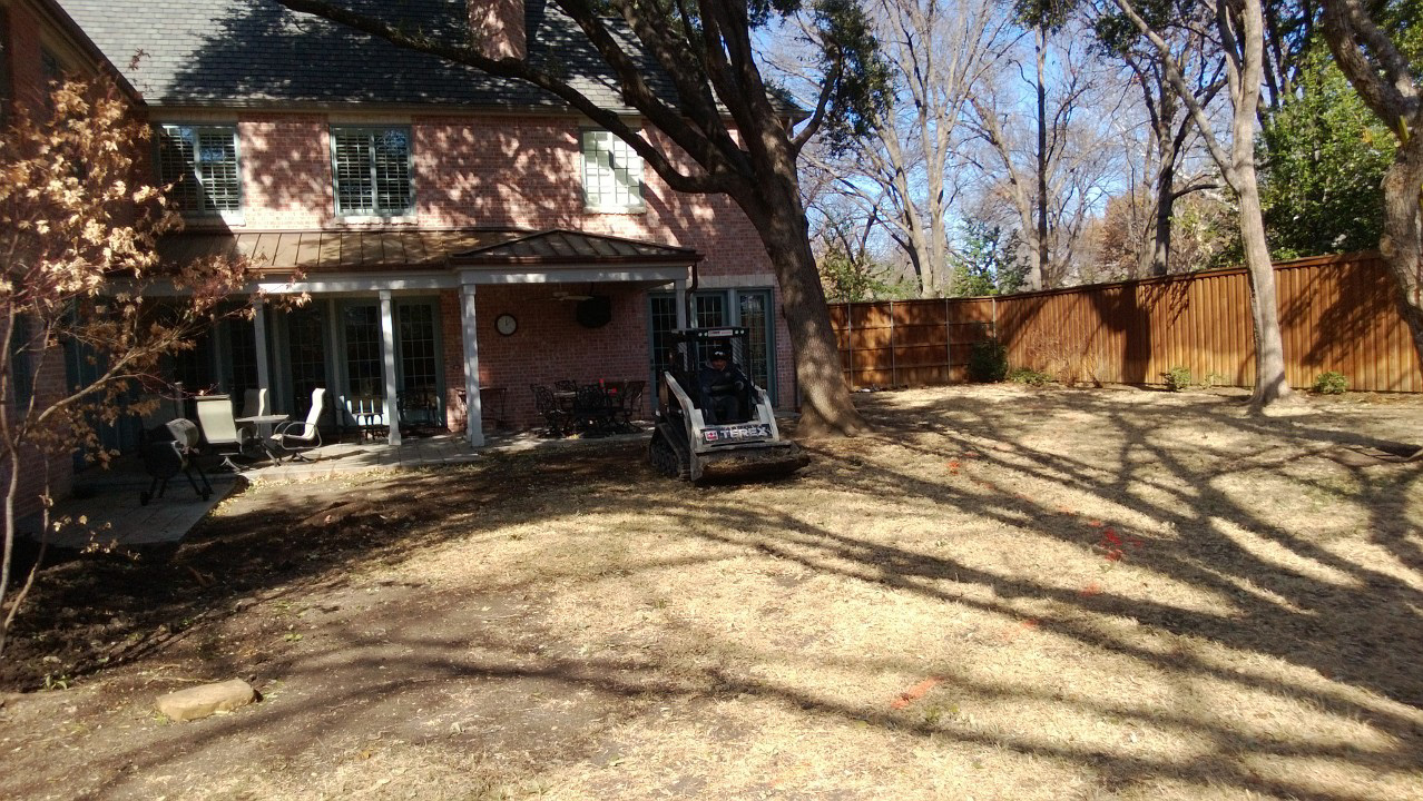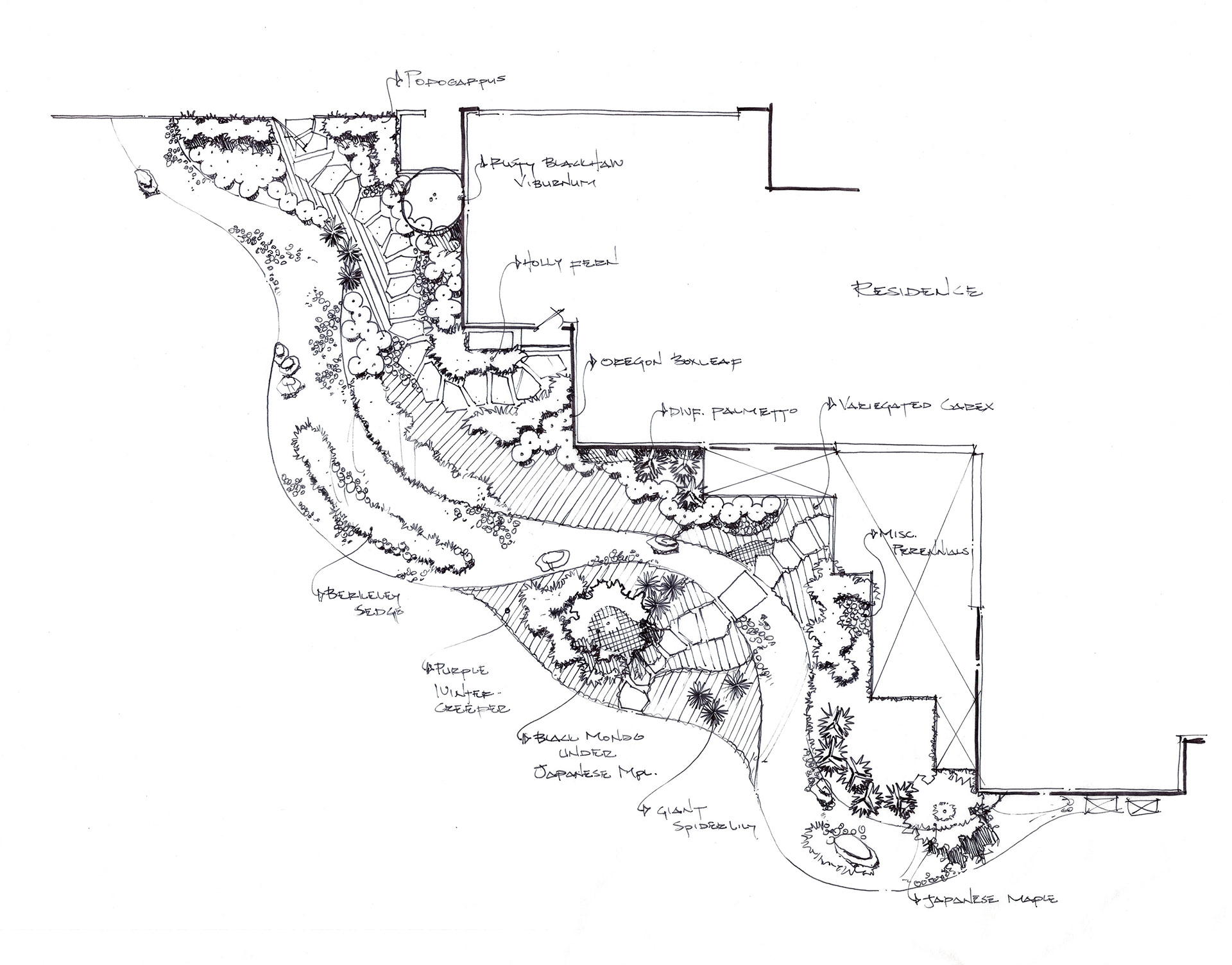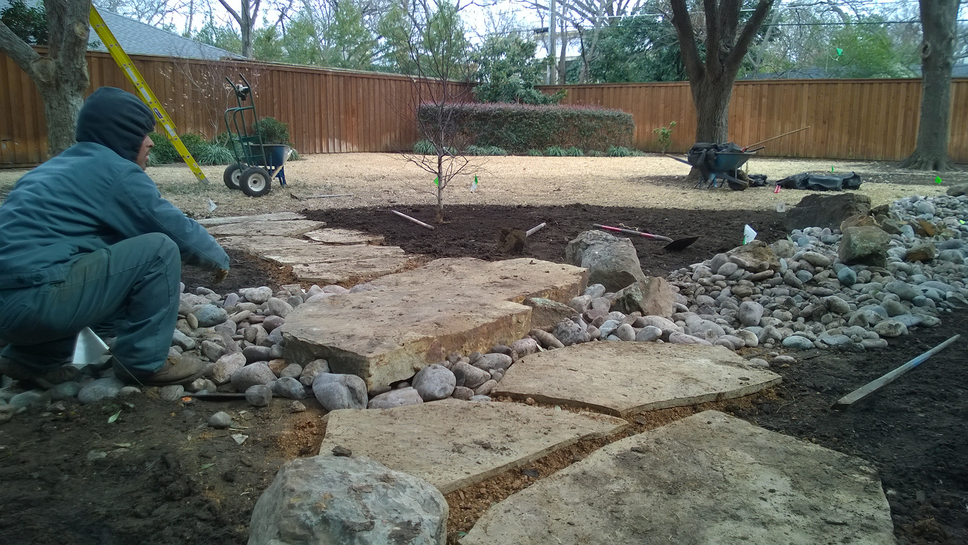 We provided a low maintenance landscape in accordance with the client’s wishes. The dry creek bed takes advantage of the existing drainage to funnel surface and roof runoff into underground drainage and off site. We also needed to be cognizant of root zones within which we had to work, so proper equipment was utilized to mitigate compaction.